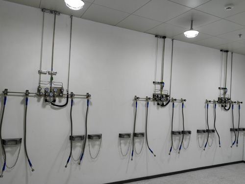 1.氣瓶間內壓力值上下調整開關按鈕與檢測室內裝修的氣路數據終端互相并選擇SS316LBA管實現相連接,途徑內接觸面光亮度為Ra<0.4umBA級途徑。